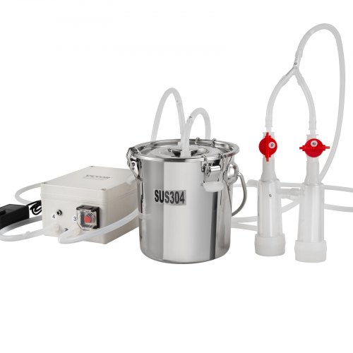 VEVOR Ordeñadora de Cabras Cubo de Acero Inoxidable 3 L Ordeñadora de Vacío Eléctrica Portátil con Pulsación Automática con Tazas y Tubo de Silicona de Grado Alimenticio, Succión Ajustable para Ovejas