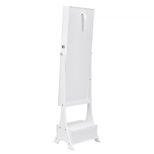 VEVOR Armario para Joyas de 41 x 36 x 157 cm con Espejo, Organizador de Espejos de Joyas con Cerradura y Espejo de Cuerpo Entero, Forro de Terciopelo, Luz LED, Cajón para Joyas, valores, Blanco
