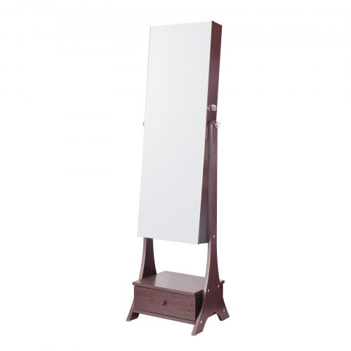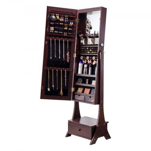 VEVOR Armario para Joyas de 41 x 36 x 157 cm con Espejo, Organizador de Espejos de Joyas con Cerradura y Espejo de Cuerpo Entero, Forro de Terciopelo, Luz LED, Cajón para Joyas, valores, Marrón
