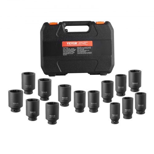 VEVOR 14 PCS Kit de Dados de Impacto de Tuercas de Eje con Estuche de Almacenamiento Kit de Dados para Tuercas de Eje Métricos de 6+12 Puntas con Impulsión de 12,7 mm para Reparación de Automóviles