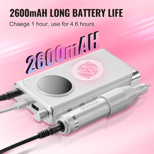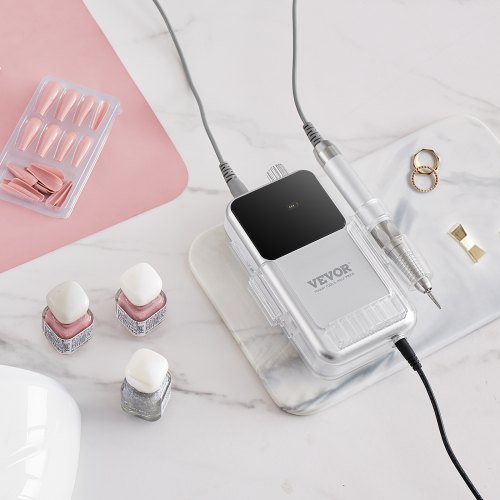 VEVOR Taladro de Uñas Eléctrico Recargable, Máquina de Lima de Uñas Inalámbrica Portátil de 35.000 RPM, Herramienta de Amoladora de Gel Acrílico para Manicura Pedicura Tallar 134 x 68 x 38 mm, Blanco
