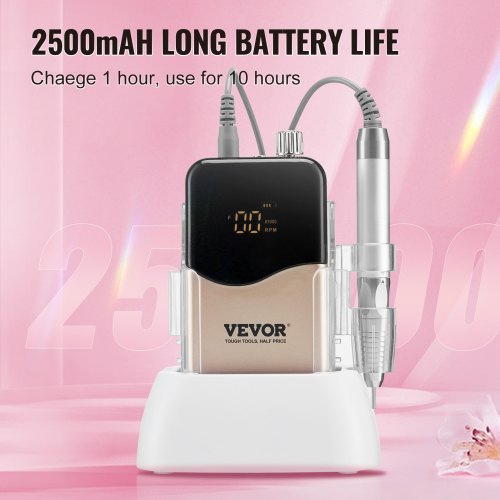 VEVOR Taladro de Uñas Eléctrico Inalámbrico con Motor sin Escobillas 35000 RRM y Base de Carga, Máquina de Lima de Uñas Recargable para Uñas de Gel Acrílico, Pulido de Manicura y Pedicura, Oro