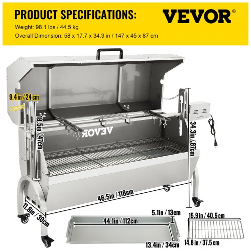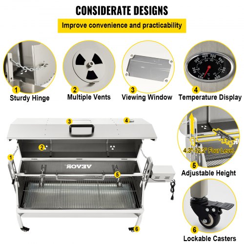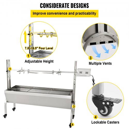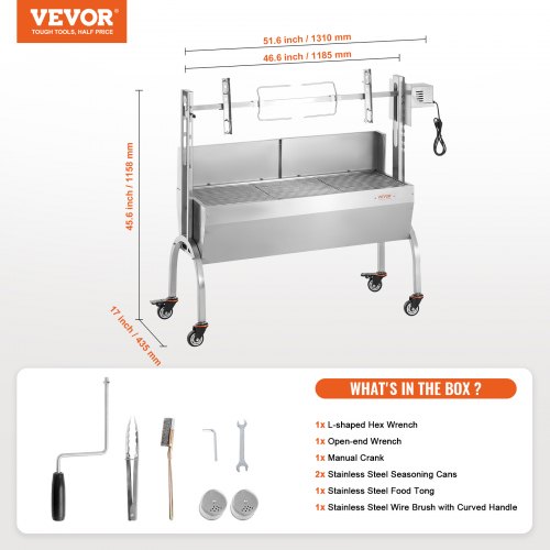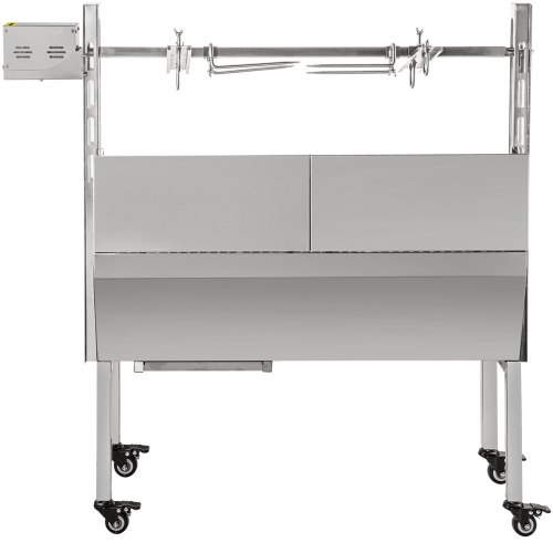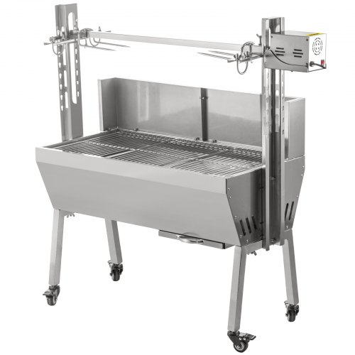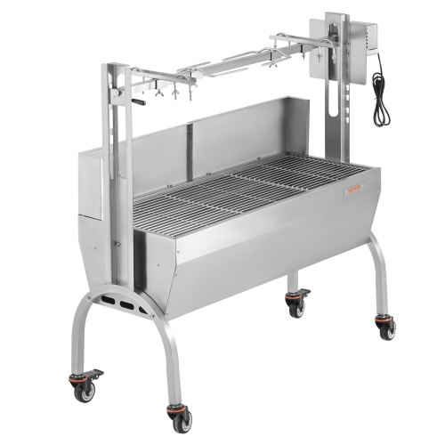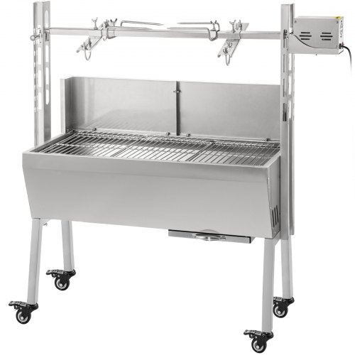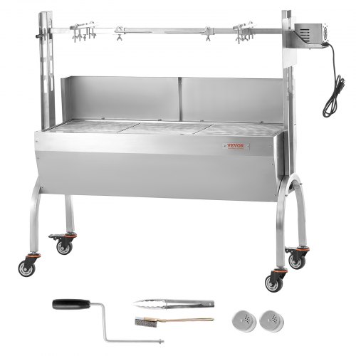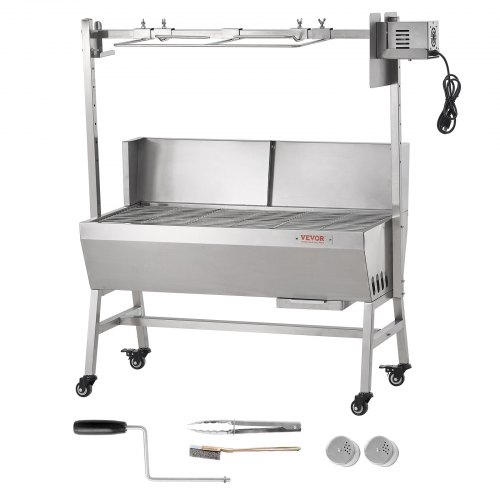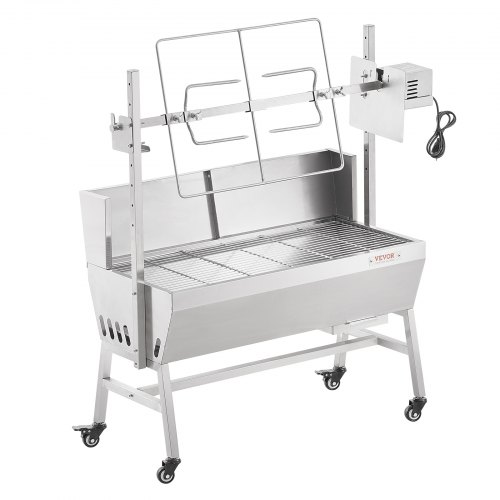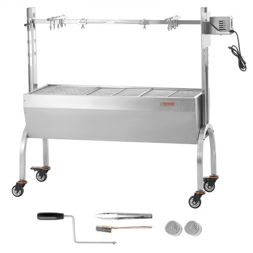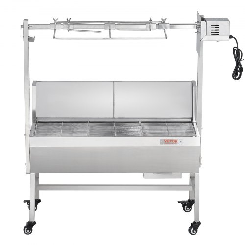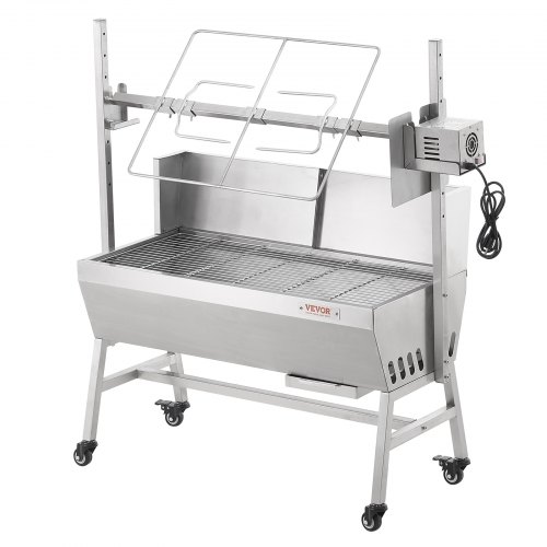 VEVOR - Asador eléctrico de acero inoxidable con motor de 42 W y ruedas bloqueables, capacidad de 39,5 kg, para barbacoa, cerdo entero, cordero, cabra, carbón, para acampar al aire libre