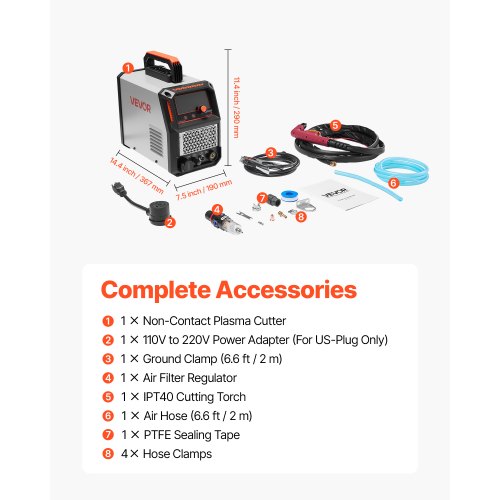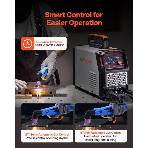 VEVOR Cortadora de Plasma 50 A Máquina de Corte por Plasma de Arco Piloto sin Contacto, Inversor IGBT con Pantalla Digital, Función 2T/4T y Tiempo PA/PT Ajustable para Reparaciones Domésticas