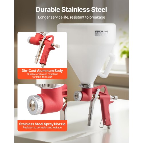 VEVOR Pistola Pulverizadora Neumática de Pintura Texturizada, Tolva 4,5 L, 3 Boquillas 3,5 mm, 6 mm y 8 mm, con Aire Comprimido para Texturas de Palomitas de Maíz, Derribo y Cáscara de Naranja