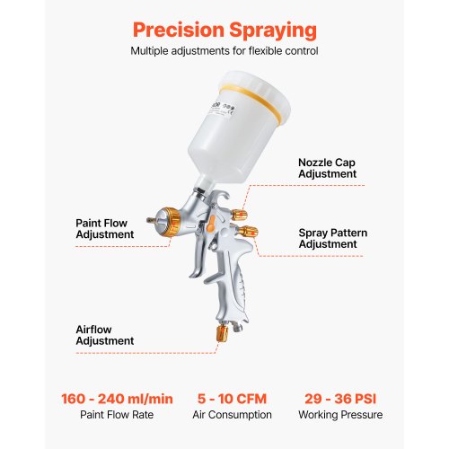 VEVOR Pistola Pulverizadora de Pintura Neumática 1000 ml, con Alimentación por Sifón y Boquilla de 1,8 mm, Caudal y Volumen de Aire Ajustables, para Muebles, Paredes y Coches, 295 x 185 x 110 mm