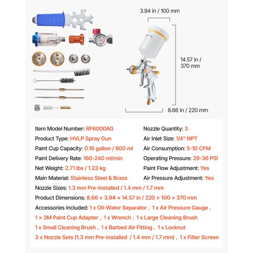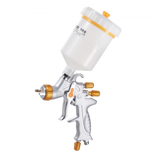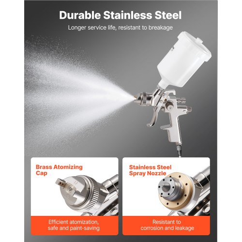VEVOR Pistola Pulverizadora de Pintura Neumática HVLP 600 ml, con Alimentación por Gravedad y 3 Boquillas de 1,3/1,4 /1,7 mm, Acero Inoxidable y Latón, para Muebles y Coches, 220 x 100 x 370 mm