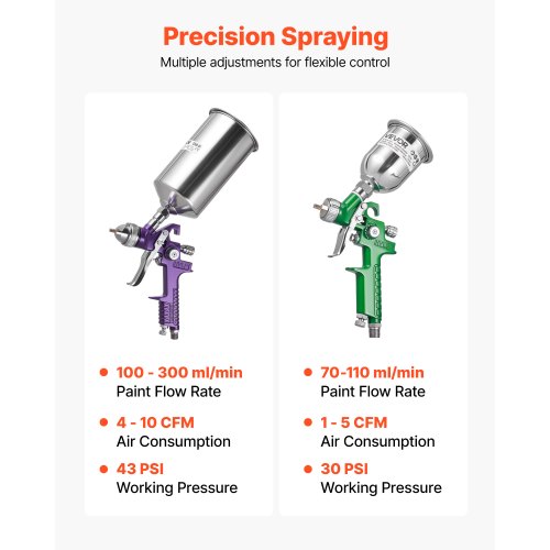 VEVOR Kit de 3 Pistolas Pulverizadoras de Pintura por Gravedad, 3 Boquillas 1,0/1,4/1,8 mm, Pistola Pulverizadora de Pintura de Aire Comprimido para Muebles Coches, Hierro Inoxidable y Aluminio
