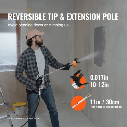 Pulverizador de pintura sin aire con diafragma VEVOR, pulverizador de pintura sin aire con carrito de eficiencia de 1100 W, pulverizador de pintura sin aire de alta presión de 2000 psi, con barra de extensión, para pulverización interior y exterior del hogar