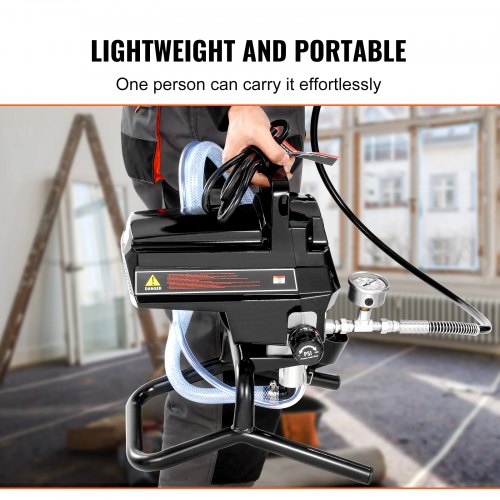 VEVOR Pulverizador de Pintura 650W Máquina Pintura Airless 0,24GPM Pistola de Pulverización Eléctrica sin Aire Presión Máxima 200 Bar 1,1 L/min Punta de 0,43 mm con Manguera de 7,5 m para Pared Mueble