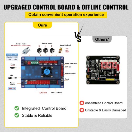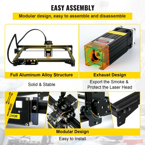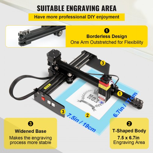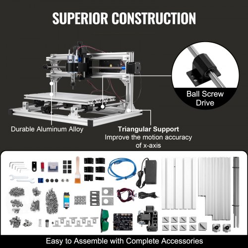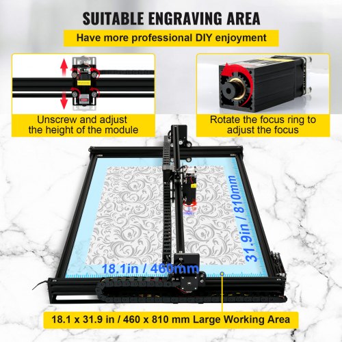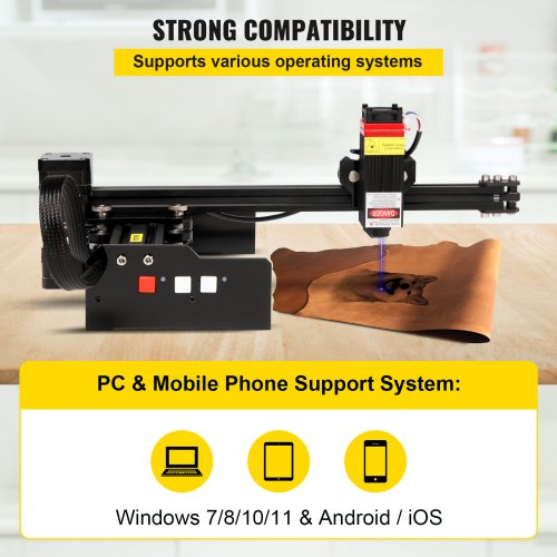 VEVOR Máquina de Grabado CNC 3018 DIY, Grabador Láser de 500 mw, GRBL Control Máquina de Grabado, Recorrido de Trabajo: 11,8"x7,1"x1,8", Máquina CNC Láser de 3 Ejes, con Varillas de Extensión de 5 mm