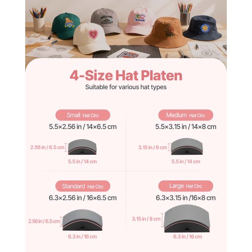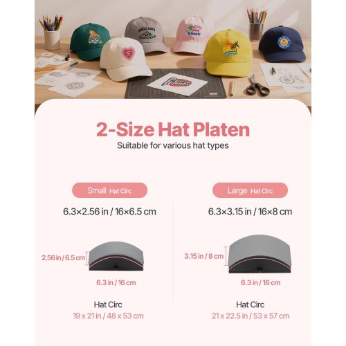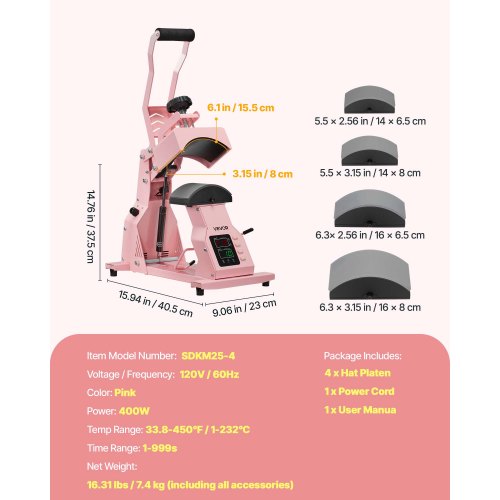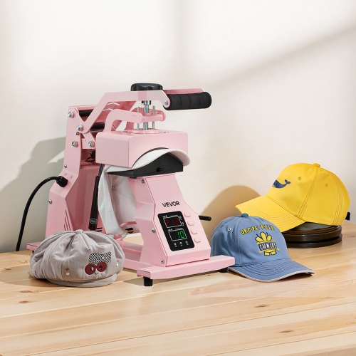 VEVOR Máquina de Prensado Térmico, Prensa de Transferencia Térmica con 2 Platinas Intercambiables, Control Preciso de Tiempo y Temperatura, Máquina de Sublimación HTV para Gorras, Diademas, Rosa