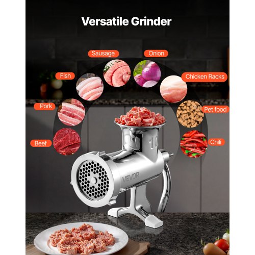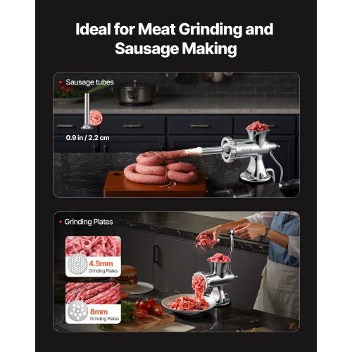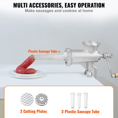 VEVOR Picadora de Carne Manual de Acero Inoxidable 304 con Manivela y Abrazadera de Acero para Mesa Máquina para Moler Carne con 2 Placas de Corte y 4 Tubos Ideal para Carne de Res, Restaurante