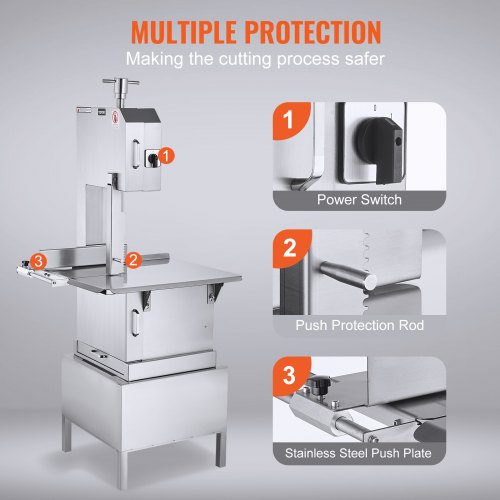 VEVOR Sierra Eléctrica Comercial para Huesos de Carnicero 2200 W Máquina Cortadora de Huesos 1500 kg/h Cortadora Eléctrica para Carne Congelada Mesa de Trabajo 620x520 mm para Supermercado Restaurante