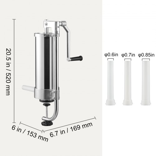 VEVOR Embutidora Manual de Salchichas de 5 L, Máquina de Llenado Vertical de Carne con 2 Velocidades de Rápida/Lenta, Acero Inoxidable Resistente, con 5 Tubos de Embutido, 490 x 300 x 660 mm