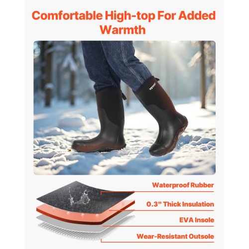 VEVOR Botas de Goma con Punta de Acero Hombre, Impermeables contra la Lluvia, Antideslizantes a Exteriores, Ligeros y Duraderos, para Fabricación, Construcción, Talla 9 EE. UU., 350 x 120 x 395 mm