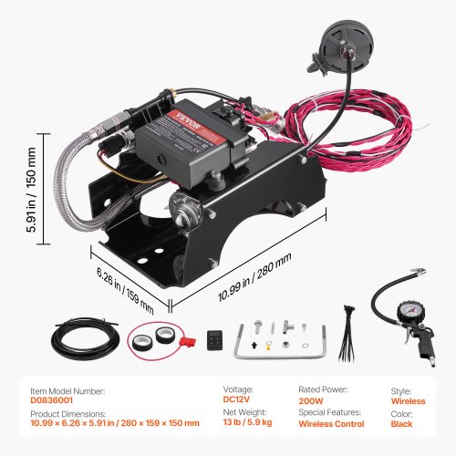 VEVOR Kit de Controlador de Amortiguador de Aire Sistema de Compresor de Aire Inalámbrico 12 V 100 PSI Kit de Compresor de Suspensión Neumática Sistema de Ruta Única Línea de Aire para Camioneta