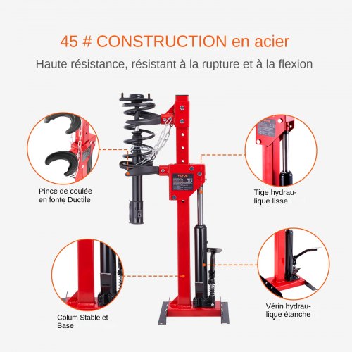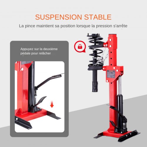 VEVOR Kit de Compresor de Resorte de Amortiguador para Automóvil Fuerza de Compresión 1T Carrera 320mm Tensor de Resorte Cilindro Hidráulico 4,5T Operación con Pie para Desmontar Resorte de Suspensión