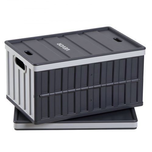 VEVOR Cajas de Almacenaje Plegables de Plástico 65 L, 2 Unidades, Contenedores de Almacenaje con Asas, Tapa Apilable, Ahorra Espacio, Soporta 38 kg para Hogar Coche Camping Organización, Gris Oscuro