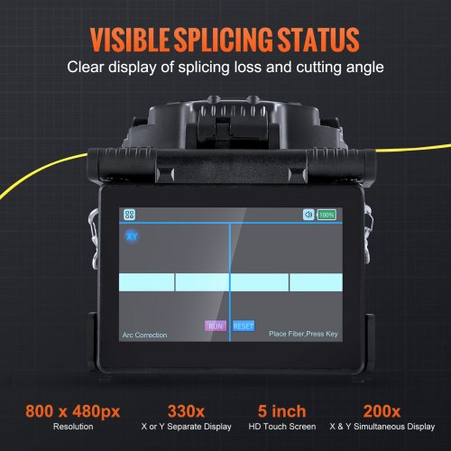 VEVOR Empalmador de Fibra Óptica de 4 Motores, con Alineación Revestida, Empalme de 6 s y Calentamiento de 13 s, con Pantalla Táctil, Soporte de Fibra 3 en 1, Batería de 7800 mAh, 146 x 131 x 152 mm