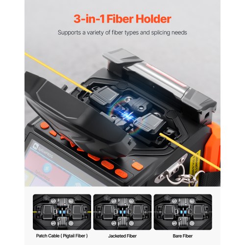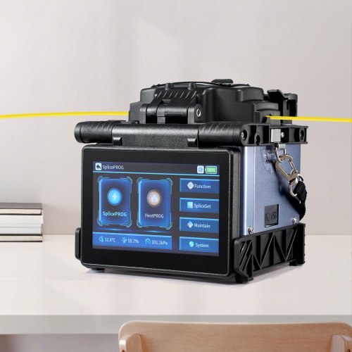 VEVOR Empalmador de Fibra Óptica de 6 Motores con Alineación de Núcleo, Empalme de 6 s y Calentamiento de 13 s, con Pantalla Táctil, Soporte de Fibra 3 en 1, Batería de 7800 mAh, 146 x 131 x 152 mm