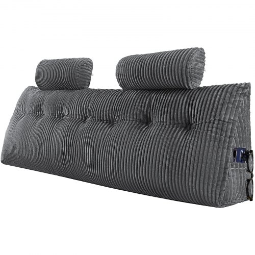 VEVOR Almohada para Cabecero de Cama 192 x 20,5 x 53 cm de Tela de Franela Lavable Tamaño King con 2 Bolsillos Laterales y 2 Reposacabezas para Leer, Jugar, Descansar y Trabajar en la Cama, Gris