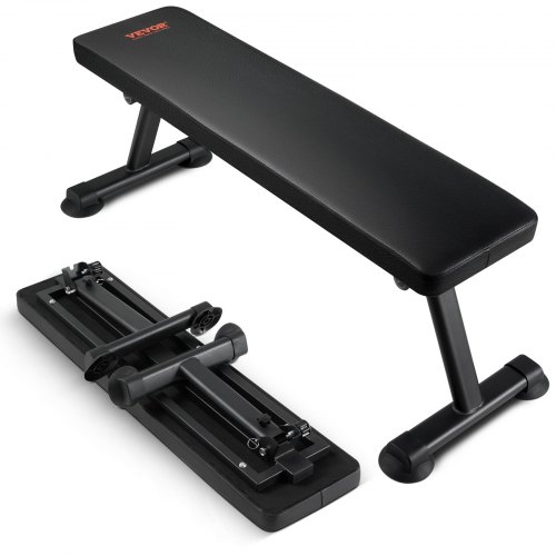 VEVOR Banco de Pesas Plano 116x42,5x43 cm Banco de Entrenamiento de Fuerza Plegable Carga de 454 kg para Ejercicios de Gimnasio en Casa Entrenamiento con Pesas Multiusos y Ejercicios Abdominales