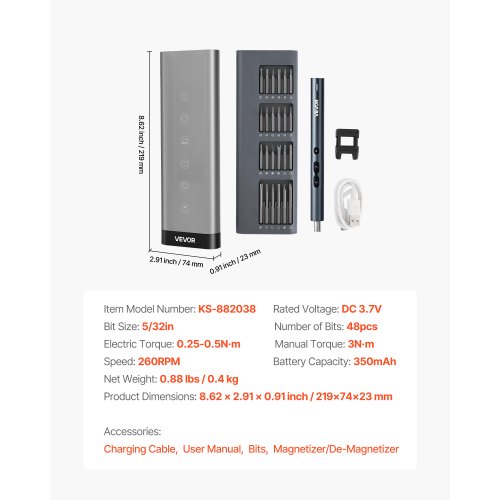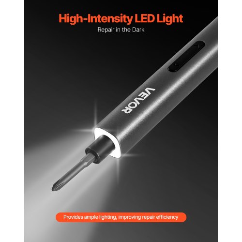 VEVOR Destornillador Eléctrico de Precisión, 48 Puntas Magnéticas, con Caja de Almacenamiento Magnética, Luz LED y Función de Carga Tipo C, a Reparar Celulares y Computadoras Portátiles, 260 RPM
