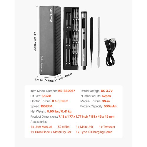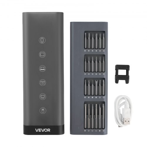 VEVOR Mini Destornillador Inalámbrico con Fuego de 24 Puntas de Destornillador Eléctrico Recargable Par Máximo Eléctrico de 0,3 Nm Manual de 3 Nm Velocidad de 170 rpm para Reparación de Gafas PC