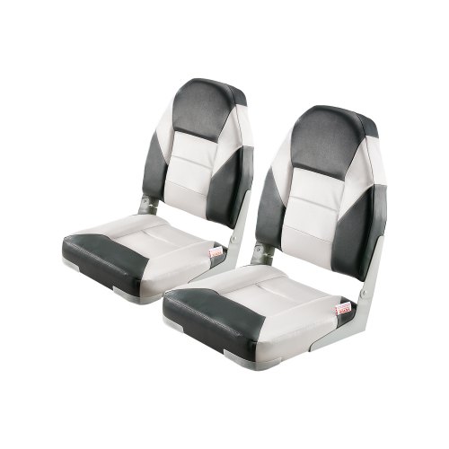 VEVOR Asiento de Barco con Respaldo Alto 2 Piezas Silla de Barco de Pesca Plegable con Cojín de Esponja Espesa y Cuero de PVC Impermeable Asiento de Bote Abatible para Barcos, Yates, Negro y Gris
