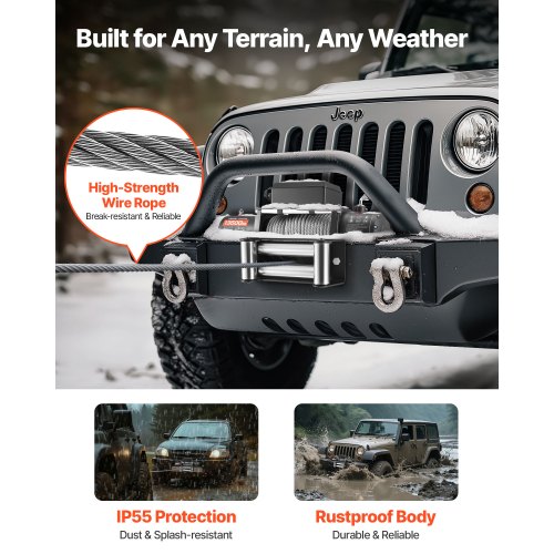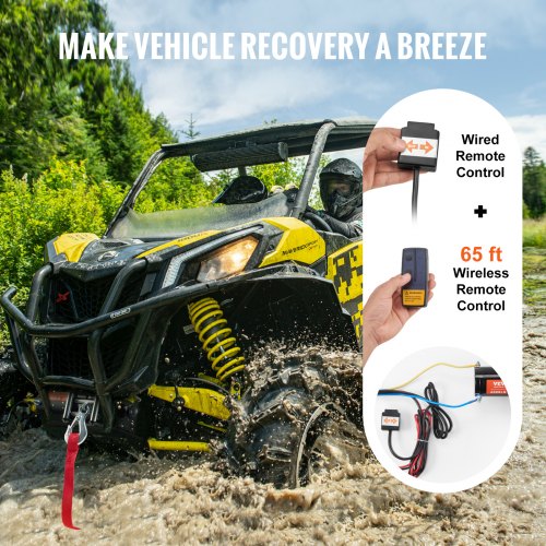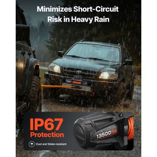 VEVOR Cabrestante Eléctrico 6123 kg 12 V CC Cuerda Sintética Guía de Cable Control Remoto Inalámbrico y por Cable Impermeable IP55 para Remolcar SUV Todoterreno, Jeep, Camión, Remolque, Barco