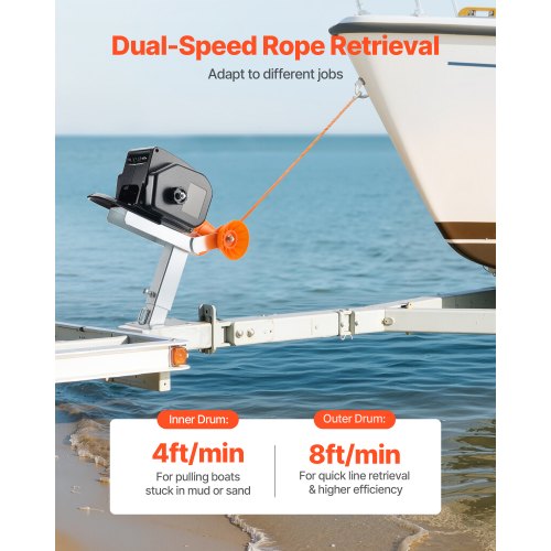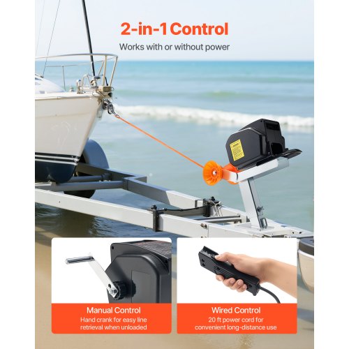 VEVOR Cabrestante Eléctrico, 12 V CC, 300 W, Reversible para Embarcaciones de hasta 900 kg, con Encendido y Apagado Automático, con Control Remoto con Cable y Manivela, 245 x 256 x 196 mm, Negro