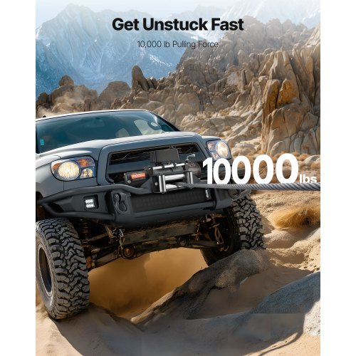 Cabrestante eléctrico VEVOR, 10 000 lb, cabrestante para camión de 12 V CC con cable sintético de Φ7/20 in x 65 ft, guía de aluminio, control remoto inalámbrico y con cable, IP55 resistente al agua para remolcar todoterrenos, SUV, Jeep, remolques, barcos