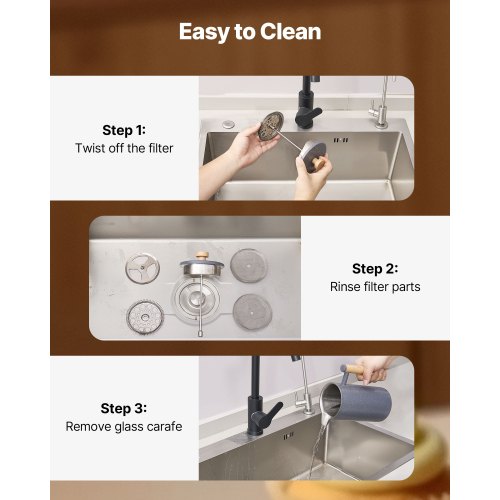 VEVOR Cafetera de Prensa Francesa de Vidrio de Borosilicato de 1 Litro con Filtro de Acero Inoxidable, para Infusión Fría, Ideal para Acampar, Viajes, Hogar y Cocina, Plata, 170 x 105 x 215 mm