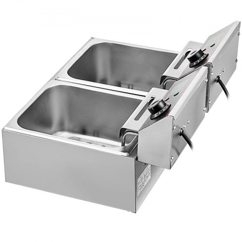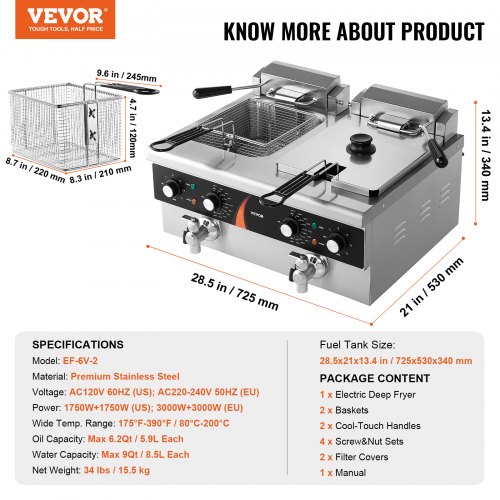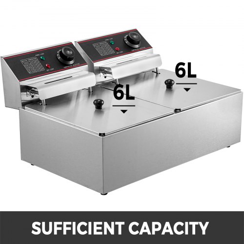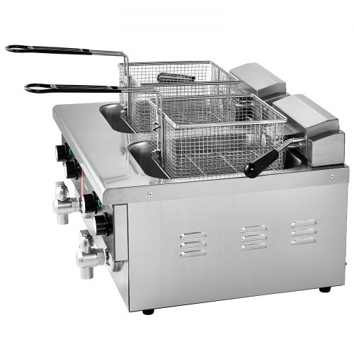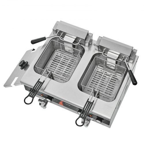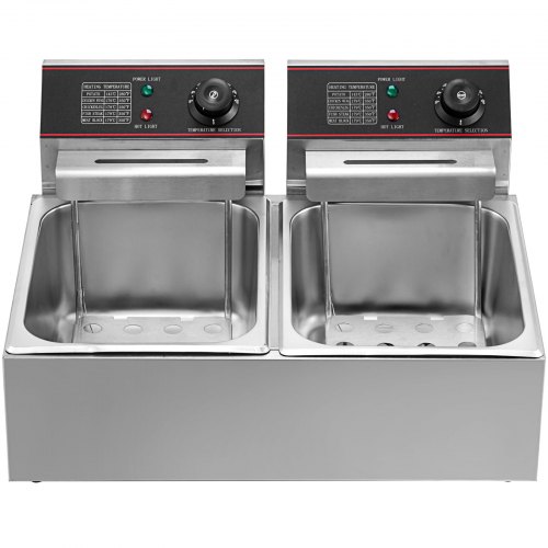VEVOR Freidora Eléctrica Comercial 2 Tanques 12L 6000W Freidora de Aceite de Acero Inoxidable con 2 Cestas para Freír Temperatura y Tiempo Ajustables 50-200°C para Aros de Cebolla Pollo Patatas Fritas