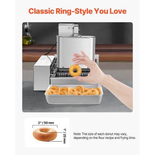 VEVOR Máquina Automática para Hacer Donas, Equipo para Donas de 6 Filas, Alta Potencia de 360 Piezas/Hora, Acero Inoxidable de Grado Alimenticio, con Control Inteligente, Tanque de Aceite 9,1 L