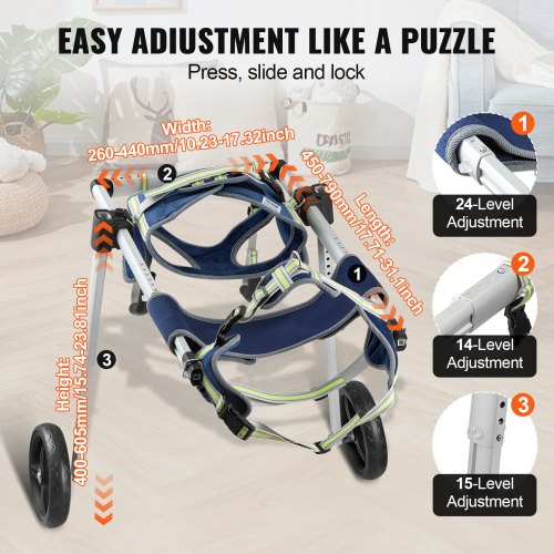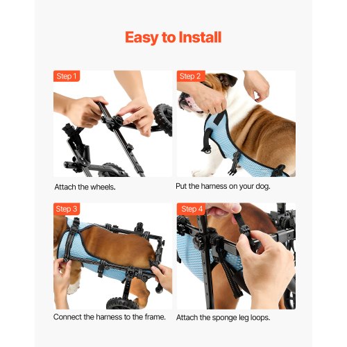 VEVOR Silla de ruedas para perros de 2 ruedas para patas traseras, silla de ruedas para mascotas, ligera y ajustable, ayuda en la curación, carrito para perros/silla de ruedas para heridos, discapacitados, parálisis, mascotas débiles con extremidades traseras (XS)