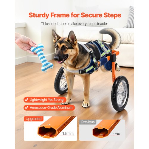 VEVOR Silla de ruedas para perros de 2 ruedas para patas traseras, silla de ruedas para mascotas, ligera y ajustable, ayuda en la curación, carrito para perros/silla de ruedas para heridos, discapacitados, parálisis, mascotas débiles con extremidades traseras (L)