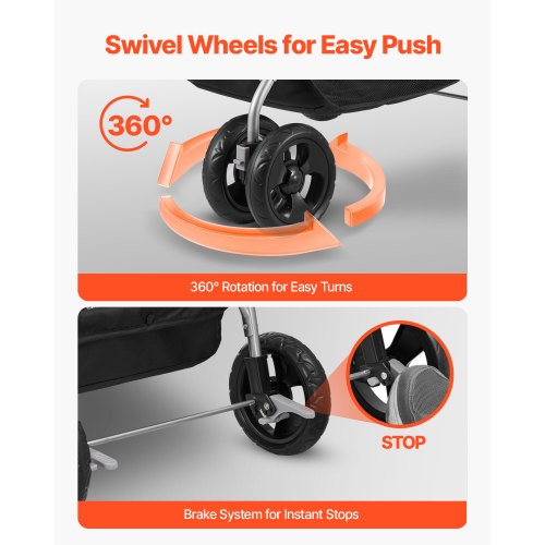 VEVOR Cochecito para Mascotas 4 Ruedas Capacidad de Peso de 173 kg Carrito Portátil para Mascotas con Ventanas de Malla Transpirable Altura Ajustable Cochecito para Animales Pequeños Medianos