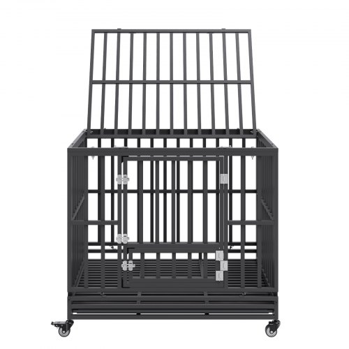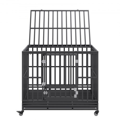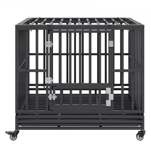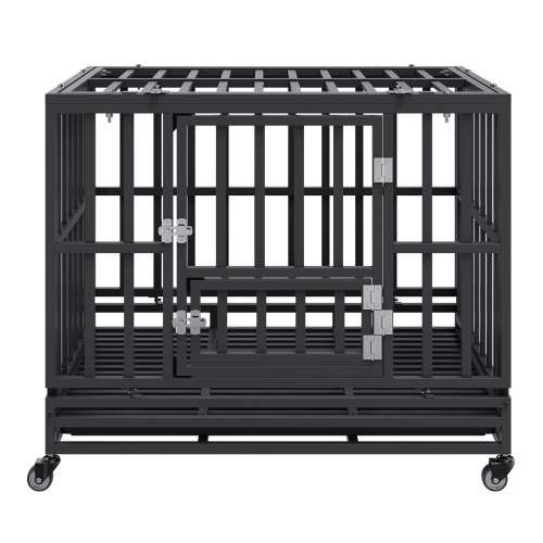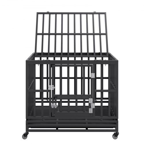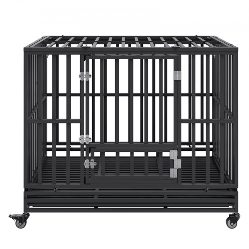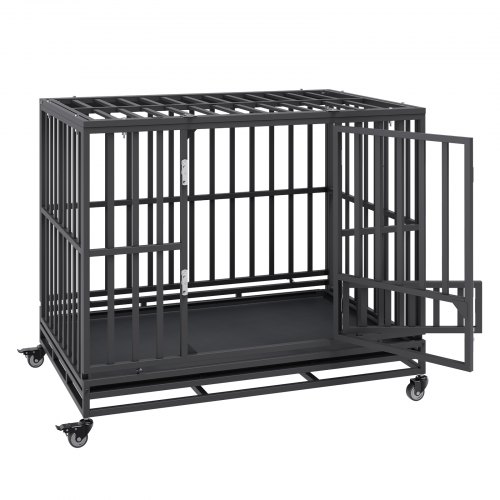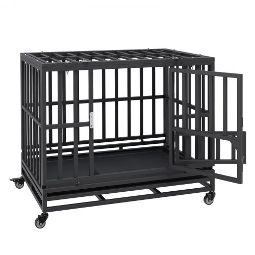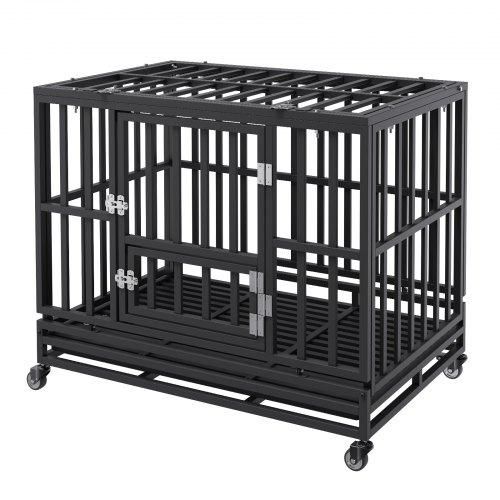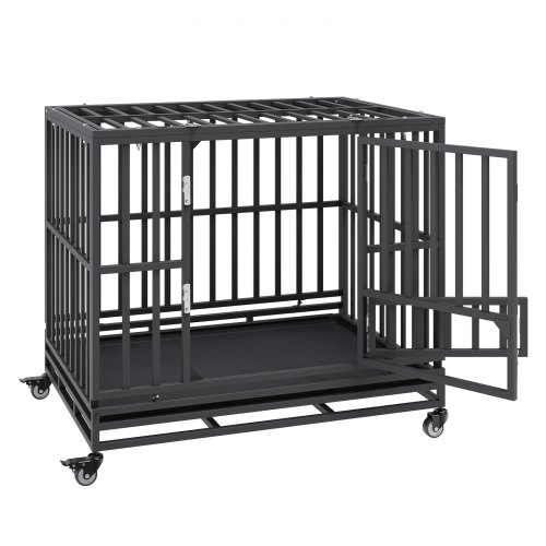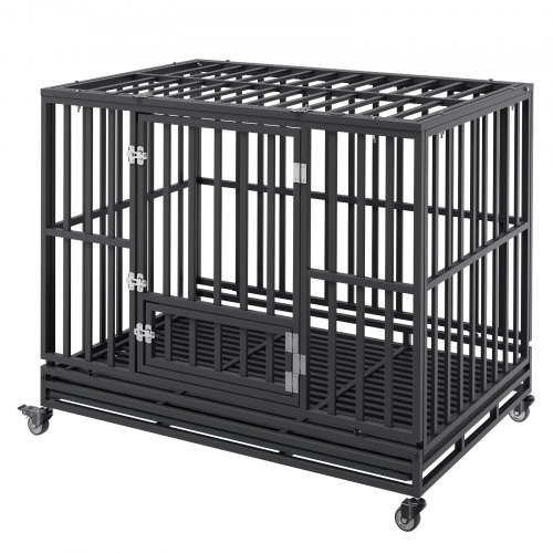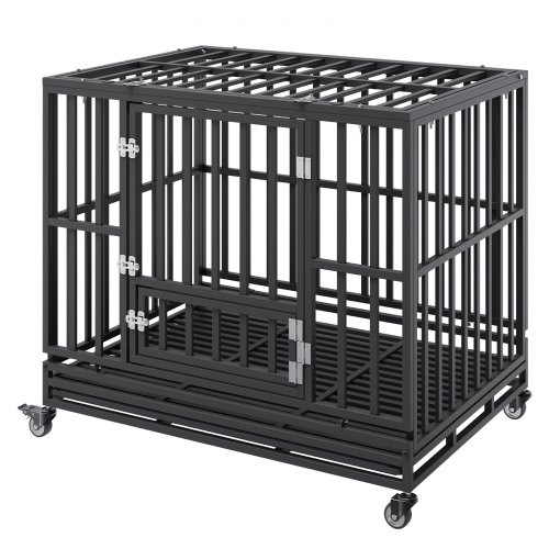 VEVOR Jaula para Perros de Alta Resistencia Jaula de Metal de 119x81x99 cm para Mascotas de Tamaño Mediano a Grande con Ruedas con Bloqueo Bandeja Extraíble de 3 Puertas para Interior y Exterior
