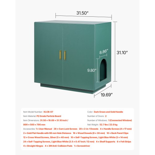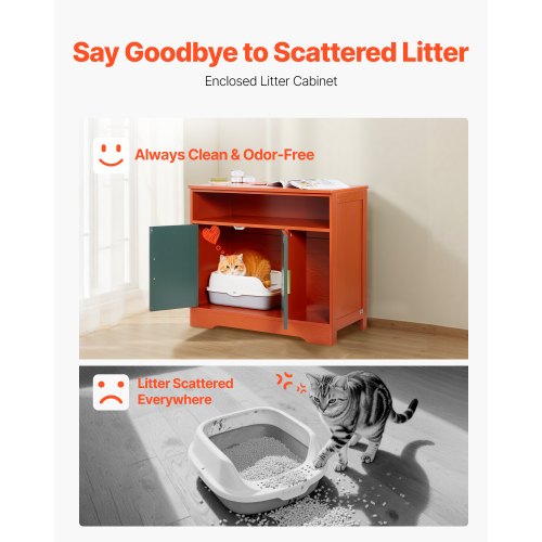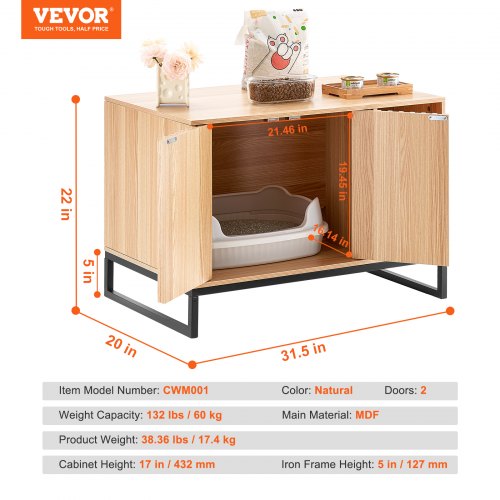 VEVOR Muebles de Baño Oculto para Gatos 80x50,8x56 cm Casa de Inodoro para Gatos 2 Puertas Patas de Metal Gabinete de Madera para Ocultar la Mayoría de las Cajas de Arena para Gatos, Color Natural