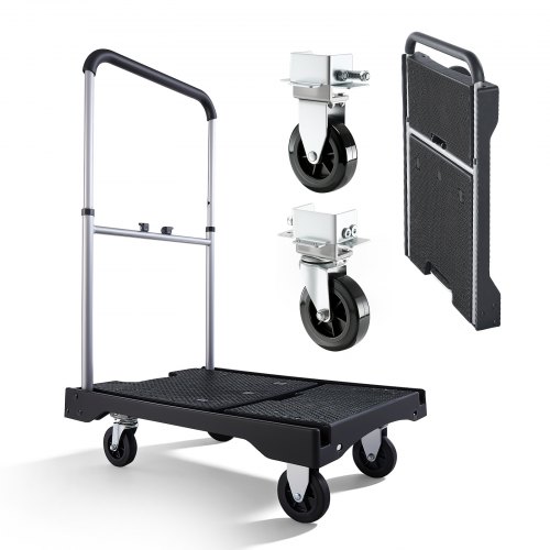 VEVOR Carro Plataforma Plegable 495 x 680 mm, Carretilla de Transporte Carga de 149,7 kg, Carrito Portaequipajes con Plataforma con Ruedas Giratorias, Asa Ajustable para Tareas Domésticas, Almacén