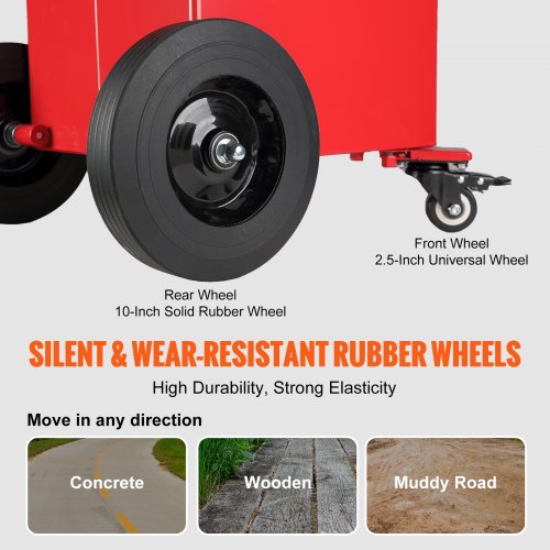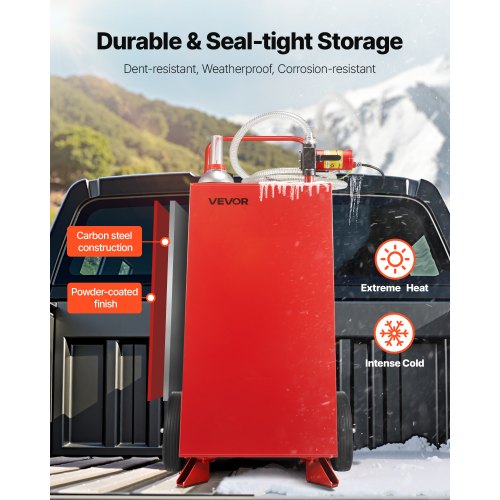 VEVOR Tanque de Almacenamiento de Gasolina de 4 Ruedas 132,5 L Bomba de Transferencia Manual Tanque de Combustible Gasolina Diesel para Automóviles, Cortadoras de Césped, Vehículos, Barcos, Rojo