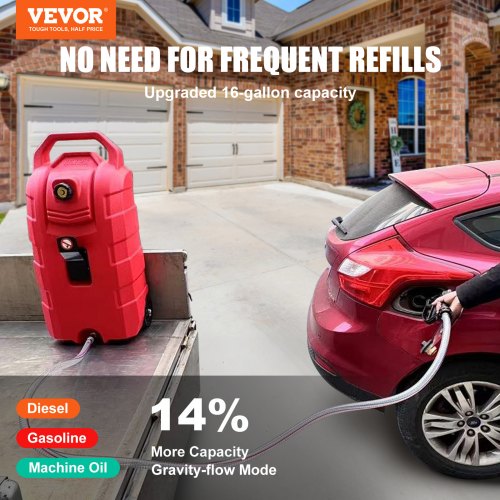 VEVOR Tanque de Combustible Portátil con Ruedas 16 Gal 60L Bidón de Gasolina 2 Piezas con Bomba Manual, Transferencia de Combustible para Gasolina, Diesel, Aceite, Máquina, Cortacésped, Coche, Tractor