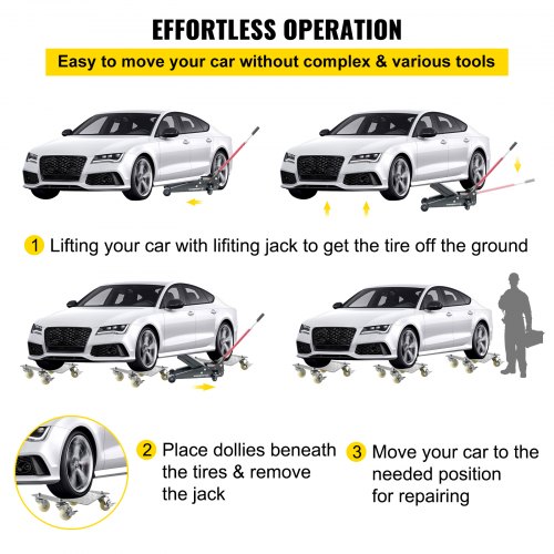 VEVOR Carro de Manipulación de Automóviles Carga de 680 kg 1 Pieza Carro Hidráulico para Desplazamiento de Automóviles Ruedas Giratorias para Posicionamiento de Vehículos, Camiones, Remolques