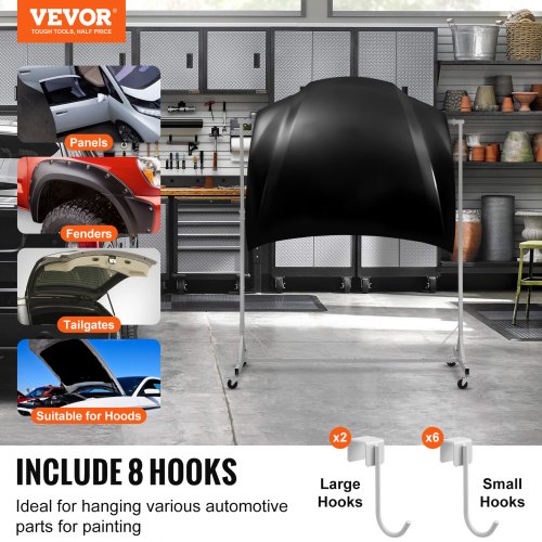 VEVOR Estante para pintura, altura ajustable de 5 a 7 pies, capacidad de 66 libras, estante para secado de pintura automotriz, 8 ganchos con 4 ruedas giratorias, soporte para carrocería de automóvil para talleres de reparación de automóviles y garajes