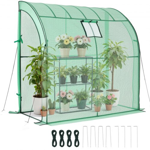 VEVOR Invernadero de Exterior 137 x 206 x 196 cm, Invernadero de Jardín con Puerta Enrollable y 2 Ventanas, Estantes de 3 Niveles, Cubierta de PE, Vivero Casero para Plantas Verduras Flores, Verde