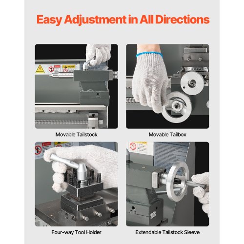 VEVOR Torno de Metal, 210 x 370 mm, Torno de Sobremesa de Precisión, Velocidad Variable de 0 a 2500 RPM, con Husillo de Engranajes de 550 W para Procesar Metales Blandos, Madera y Plásticos