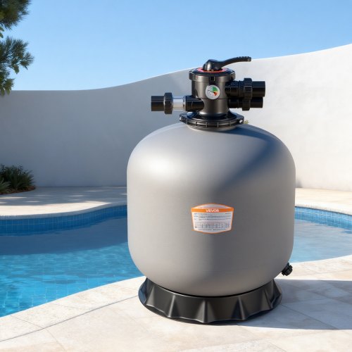 VEVOR Filtro de Arena Duradero de 45 cm y 151,4 LPM, para Piscinas Elevadas Enterradas, con Válvula Multipuerto de 7 Vías, Retrolavado, Enjuague, Recirculación, Desagüe, Invierno y Modos Cerrados