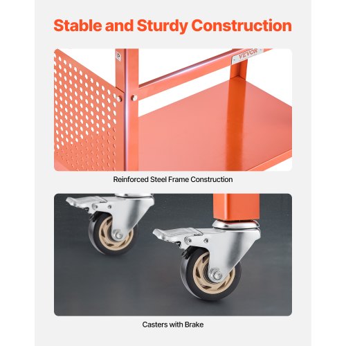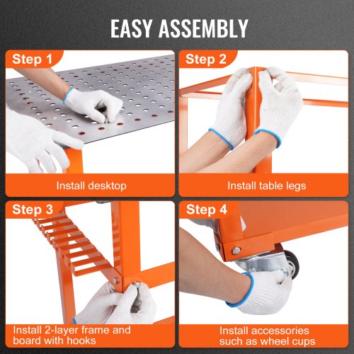 VEVOR Mesa de Soldadura con Capacidad Peso Estático de 362,8 kg, Banco de Trabajo de Acero Móvil con 4 Ruedas(2 con Freno), Tablero de Almacenamiento de Doble Capa y Orificios, 1016 x 609,6 x 914,4 mm